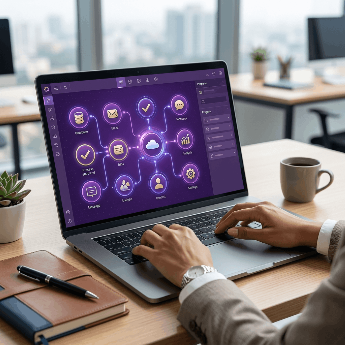 Chez Fanto, nous sommes spécialisés dans la construction. Make Des scénarios d'automatisation adaptés à votre entreprise. Nos experts modélisent vos processus sous forme de flux de travail par glisser-déposer, connectant votre CRM, vos e-mails, vos formulaires, vos bases de données et vos outils d'IA en des pipelines automatisés fluides, opérationnels 24h/24 et 7j/7, sans aucune intervention manuelle.